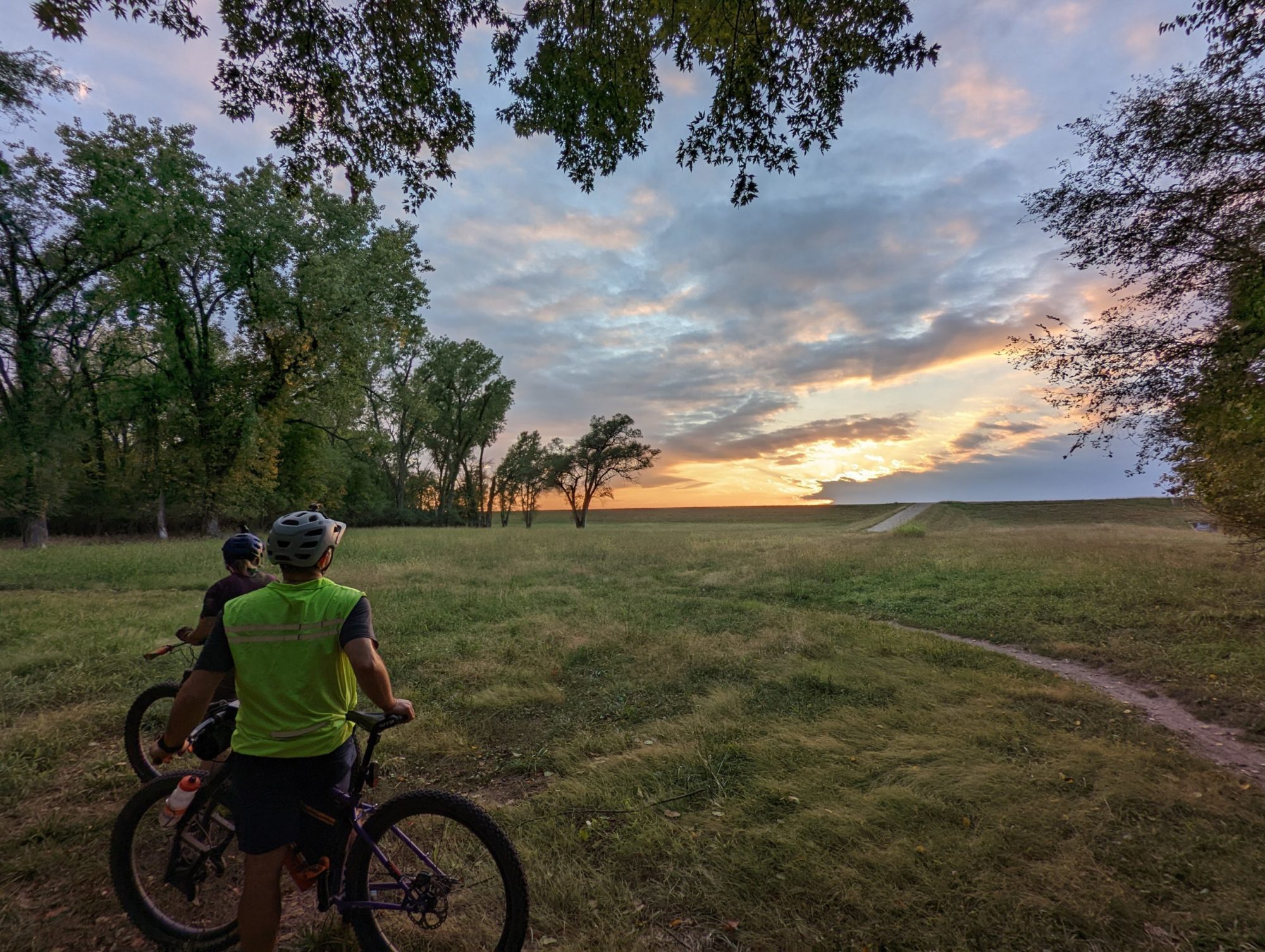In the Lawrence area, freeze–thaw damage is especially common because of our climate and soil. Winter temperatures frequently swing above and below freezing, sometimes multiple times in a single week, which keeps trails in a prolonged unstable state. Many local soils are clay-rich and slow to drain, meaning they hold moisture longer and take more time to regain strength after a thaw. South-facing sections may soften early in the day while shaded or low-lying areas remain frozen underneath, creating uneven conditions that are particularly vulnerable to damage. This makes patience critical during late winter and early spring, even when parts of the trail seem rideable.